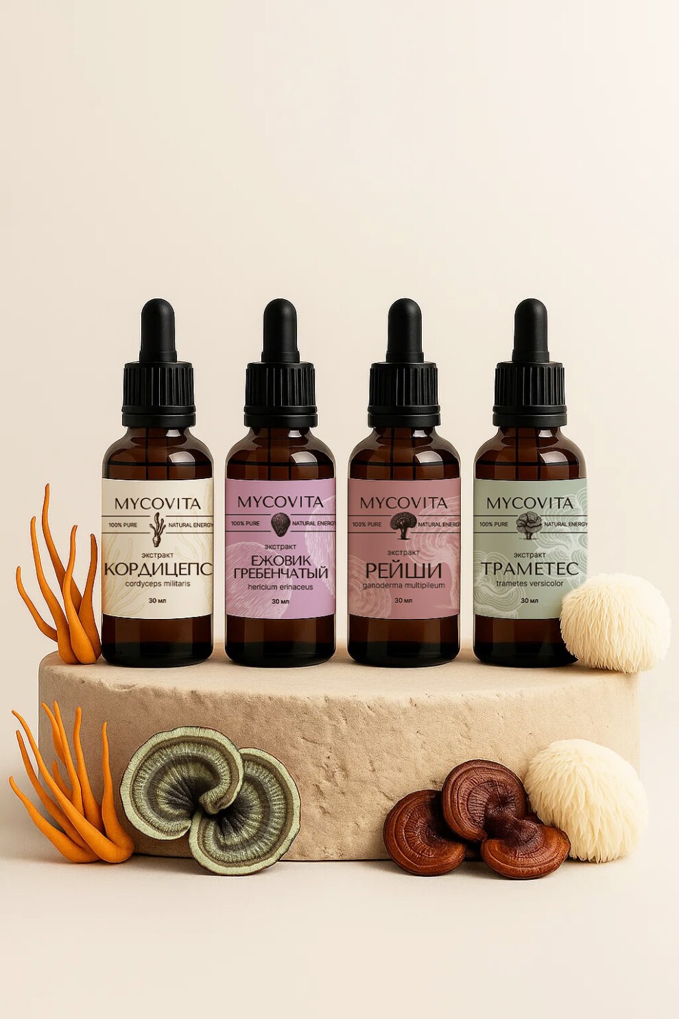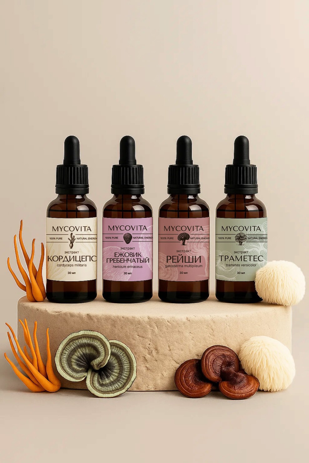 Комбо: Четыре стихии (Кордицепс & Ежовик & Рейши & Траметес)